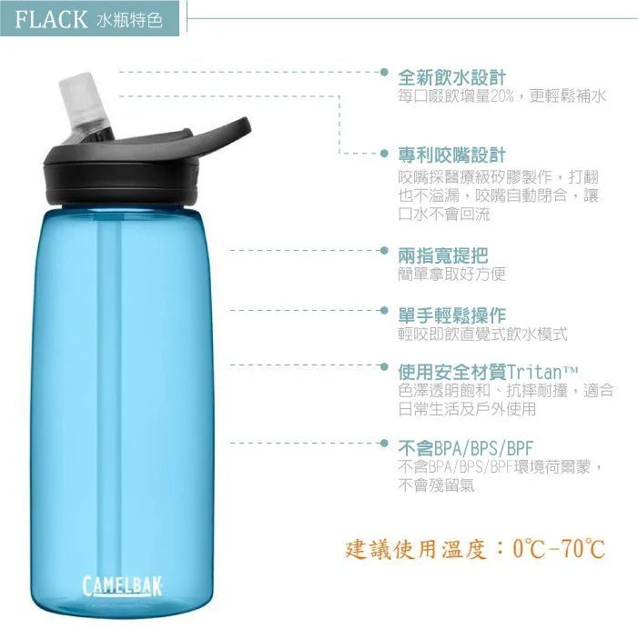 【CAMELBAK】eddy+ 多水吸管水瓶 RENEW 1000ml.運動水壺/CB2464402001 透藍✿30E010